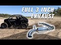 With the popularity of our sport mufflers, & Polaris's bump in HP for their turbo models we knew it was time to step up and provide a FULL 3" exhaust system, and that's what we have mastered! With a deep throaty sound in mind, we mated our 3" mid pipe with a inline muffler to our ever so popular 3" perforated core catless muffler. Our turbo flange is port matched for the absolute highest flowing exhaust on the market & included is our is a port matched turbo manifold gasket. Securing that manifold to the turbo is worry free as we include new grade 8 hardware! The mid pipe is built using a H.D. chain-link flex pipe. The mid pipe and muffler are mated using a stainless v-band clamp connection for a clean free flowing design. For the tip we did a sweeping fish tail and allowed for the use of the stock rear fascia or ditch it and let the world see this piece of art!